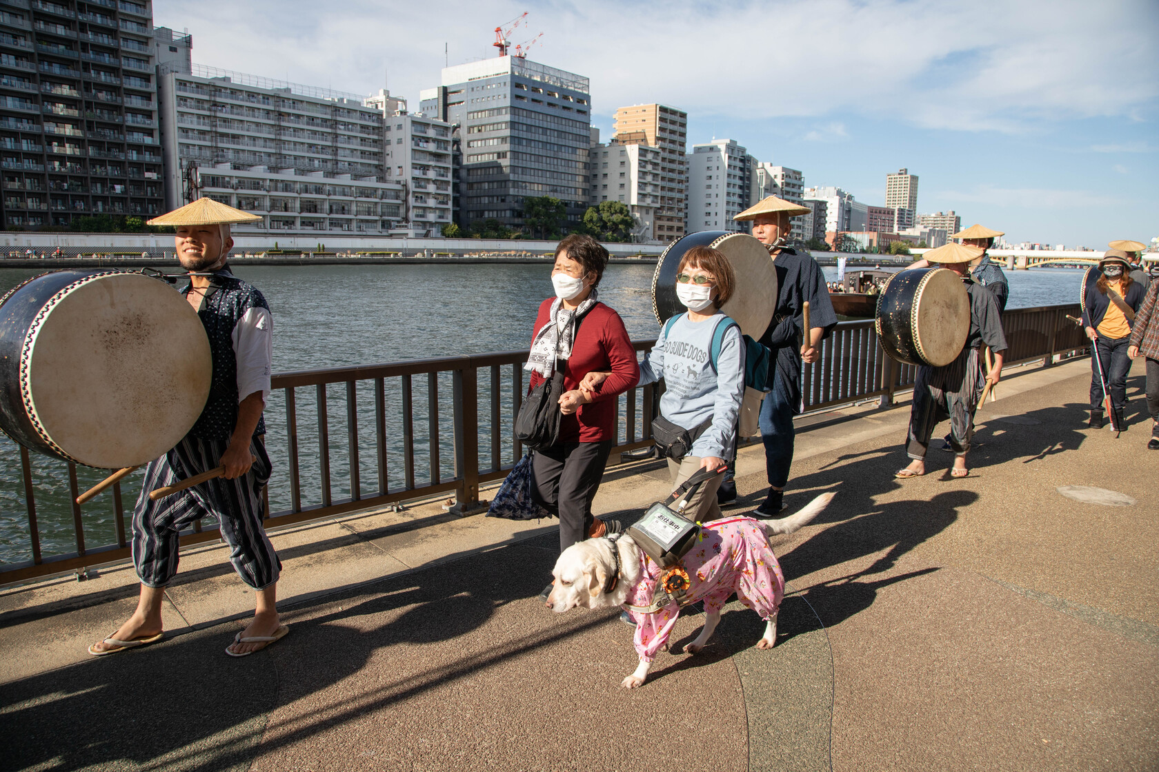 隅田川下流へと歩いて行く切腹ピストルズ。遠くなっていく音は離れていく距離を感じさせます。